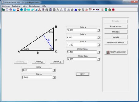 Geometrix XXL ist ein Flächen- und Körperberrechnungsprogramm mit animierter Grafik. Von Zylinderabwicklungen, über Geometrie (Winkelfunktionen), Kreisabschnitt, Körperberechnungen, sowie N-Ecken, Lochkreise, Kreisringe, Trapez usw. . Alle berechneten Flächen, lassen sich in Körper ( Volumen ) umwandeln. Transparente und übersichtliche Aufstellungen ihrer Werte, sowie die Anzeige des Rechenwegs im Fenster Viewer.