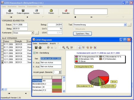 Dieses Kassenbuch ist einfach und durch Eingabehilfen sehr schnell zu bedienen, bietet mehrere Berichtsoptionen für Kassenbuch, Kontenübersicht und gruppierte Statistiken. Die Daten können außerdem für andere Anwendungen exportiert werden.
