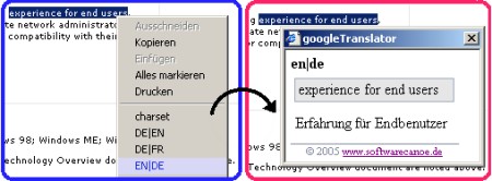 MS IE Erweiterung, mit der man im Browser ausgewählten Text übersetzen kann. Es genügt den Text zu markieren, mit der rechten Maustaste drauf zu klicken und Übersetzungsrichtung auszuwählen. Diese Erweiterung basiert sich auf den Google-Sprachtools.