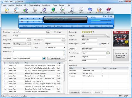 Die professionelle Musik-CD-Verwaltung. Der Computer ist der bessere CD-Player. Dafür sorgt nicht zuletzt Hitbase 2010. Die nach zwei Jahren Entwicklung freigegebene Version 2010 bietet zahlreiche neue Funktionen an, darunter ein neues schnelles Datenbanksystem, intuitive Benutzer Oberfläche, 3D Wiedergabeliste, neue Albenübersicht, Internet Suche für Cover und Liedtexte, neue verbesserte RIP Funktion, neue Statistikfunktionen, vieles mehr...