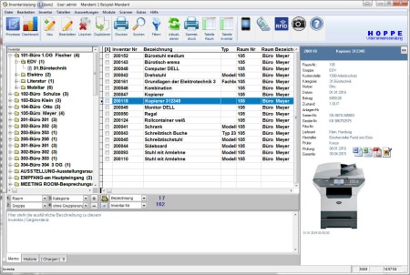 Schnelle und komfortable Inventarerfassung Verwaltet werden: Büroeinrichtungen, Möbel, Computer... Jedes Inventar hat eine Raumnummer, Beschreibung.. Zusätzlich kann ein Bild und eine Datei (z.B. die Inventarbeschreibung in Word) dargestellt werden. In einer übersichtliche Darstellung sehen Sie schnell: praxiserprobte Inventarverwaltung unterstützt Sie bei Erfassung Ihres Inventars