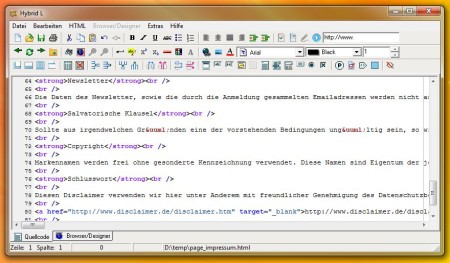 Integrierter Browser (IE), direktes Umschalten zwischen HTML Code und Browseransicht. Integrierter Designer zur WYSIWYG Editierung von HTML Seiten. Unicode Quellcode-Editor mit Syntaxhervorhebung, Codevorschlägen und Zeilennummerierung Suche/Ersetzen mit Ergebniskontrolle über diverse Dateien Sie entscheiden selbst: Voller Zugriff auf den Quellcode im komfortablen Quellcode-Editor oder optisch orientiertes Bearbeiten im Designer