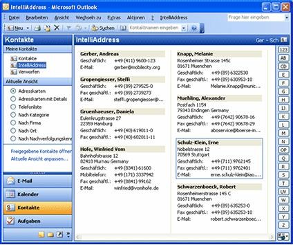 IntelliAddress ist ein Outlook-Tool, das Adressen (Anschriften) in vorhandenen E-Mails automatisch zu Outlook-Kontakten umwandelt. Eintreffende Mails werden nach im Text enthaltenden Anschriften durchsucht und automatisch in Outlook-Kontakte verwandelt. Word-Vorlagen für Briefe u. Faxe mit Absender und Empfänger. Findet Kontakte in Webseiten und Dokumenten (Word, PDF etc.). Eliminiert Outlook Duplikate, Telefonnummern-Format wählbar.