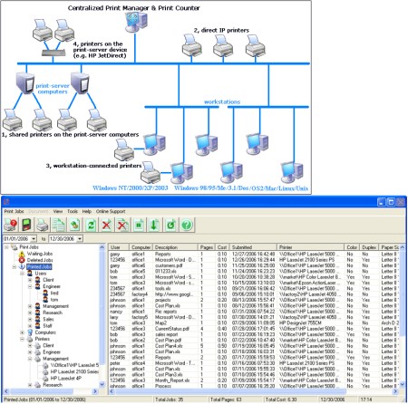 Es ist ein leistungsstarker zentralisierter Druckmanager und -zähler, der die Automatisierung und Vereinfachung der Druckverwaltung für Druckumgebungen unter Windows-Druckservern, Remote-IP-Druckumgebungen (Benutzer senden die Druckaufträge direkt über die IP-Adresse des Druckers) und lokale Druckumgebungen (Benutzer senden die Druckaufträge an den Drucker, der lokal an ihre Arbeitsstation angeschlossen ist) unterstützt.
