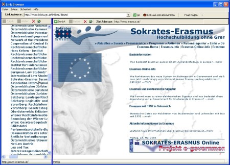 Link Browser ist ein spezieller Browser zum Surfen in Homepages mit Linklisten oder Thumbnails (verkleinerte Bilder). Normale Browser öffnen Links oder Thumbnails entweder im selben Fenster, in einem neuen Fenster oder einem neuen Tab Link Browser arbeitet mit zwei Browserfenstern nebeneinander. Im Link-Fenster wird die Seite mit den Thumbnails oder der Linkliste geladen. Im Ziel-Fenster wird die Seite oder das Bild angezeigt.