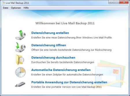Mit Live Mail Backup 2011 können Sie Ihr Windows Live Mail Profil auf einfache Art zuverlässig sichern und im Bedarfsfall schnell wiederherstellen. Das gesicherte Windows Live Mail Profil wird durch Live Mail Backup 2011 automatisch komprimiert, so dass dieses platzsparend auf Ihren lokalen Datenträgern oder auf einem FTP-Server abgelegt werden kann. Des Weiteren kann das gesicherte Profil mit Live Mail Backup 2011 durch eine 256-Bit AES Verschlüsselung effektiv vor fremden Zugriff geschützt werden.