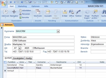 Sofort einsetzbare CRM Lösung, die eng mit Outlook, Word und Excel (auch OpenOffice) verbunden ist. Objektorientiert und intuitiv werden auch komplexe Funktionen für jeden Anwender erreichbar. MAXCRM macht Geschäftskontakte und damit verbundene Aktivitäten nachvollziehbar, Projekte und Kunden besser bewertbar.