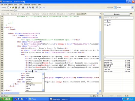 NoteMaster ist ein kompletter, äußerst flexibler Code- und Texteditor. Das Syntaxhighlighting und andere Einstellungen basieren dabei vollständig auf XML-Dateien; problemlos lassen sich eigene Syntaxschemata erstellen.
