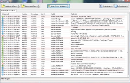 Mit dem Tool "nxTail" können Logdateien live betrachtet werden. Es ist speziell für nxlog-Dateien optimiert, kann aber ebenso andere Logfiles, aus Java (log4j) oder NLog, anzeigen. Zusätzlich kann man mit nxTail direkt die aktuellen Lognachrichten aus einem Navimatix LogServer betrachten. Sehen Sie also Ihre Logs von irgendwoher irgendwo an (remote tail per tcp).