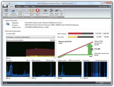 O&O CleverCache 7 Professional Edition optimiert die Dateicache-Verwaltung Ihres Windowsbetriebssystems. So ist eine enorme Leistungssteigerung bis auf das Doppelte der ursprünglichen Systemgeschwindigkeit möglich – und das alles ohne zusätzliche Hardware und ohne Einschränkung Ihrer Systemstabilität.