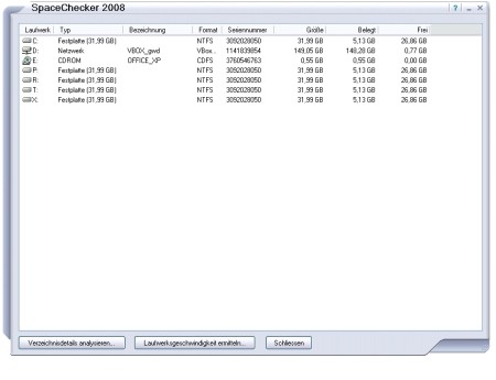 Mit diesem Programm können Sie sich sowohl die Datenträgerinformationen, als auch den belegten Speicherbereich von allen Verzeichnissen und Unterverzeichnissen anzeigen lassen und analysieren. Somit kommen Sie den Speicherfressern ganz schnell auf die Schliche.
