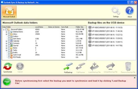 Outlook Sync & Backup ist ein nützliches Tool für Microsoft Outlook, um einerseits ein Backup Ihrer Outlook-Daten auf einem USB-Speicher zu erstellen und zum anderen um Ihre Outlook-Daten zwischen verschiedenen PCs (z. B. zwischen Ihrem Desktop-, Laptop-und Netbook) zu synchronisieren.