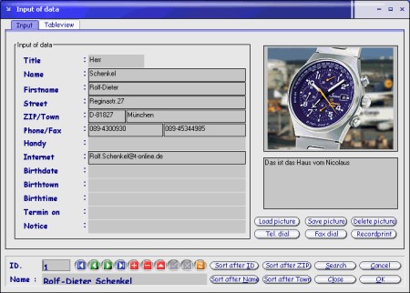 PC-Adressenverwaltung für Windows9x/2000/Me/NT/XP mehrsprachig mit Datenbank für Bild ( z.B. Passfoto ) und Adressdaten, Suchfunktion, Schnttstelle zu Winword, Excel, Nottepad, Druckvorschau etc. Mit ausführlichem Handbuch und Onlinehilfe. 43 verschiedene Layouts (5 intern 38 extern). eingeschränkte Testversion.