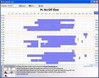 PC On/Off Time zeigt grafisch Ihre am PC verbrachte Arbeitszeit der letzten 3 Wochen an. PC On/Off Time muss vorher nicht installiert werden oder im Hintergrund laufen, um PC-Aktivitäten aufzuzeichnen.