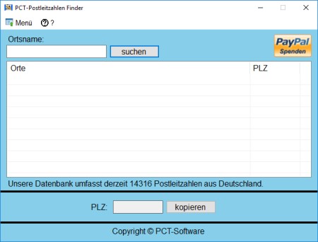 Geben Sie einfach einen gewünschten Ort ein und das Programm wird Ihnen die Postleitzahl ausgeben.