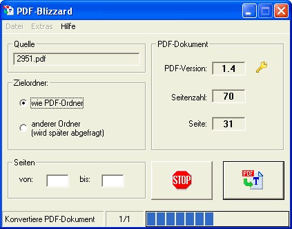 PDF-Blizzard, ein leistungsfähiges und einfach zu bedienendes Text-Extraktions-Tool, extrahiert den Textinhalt aus PDF-Dateien und speichert ihn als Textdatei. Das Layout des Originaldokuments bleibt dabei weitgehend erhalten. Besonderer Wert wurde auf die korrekte Wiedergabe des Spaltenlayouts eines PDF-Dokuments gelegt. Die Installation von PDF-Reader- oder Writer-Software ist nicht erforderlich.