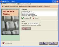 Mehrere PDF Dateien zu einer großen PDF Datei zusammenfügen, dass ist nun kein Problem mehr! Beim Erstellen von PDF Dateien über einen Druckertreiber besteht öfters das Problem, dass die PDF-Datei nicht ohne Probleme auf einmal erstellt werden kann, weil aus mehreren Programmen jeweils einige Seite erforderlich sind. Darüber brauchen Sie sich nun keine Sorgen mehr machen, denn mit PDFs 2 One können Sie nachträglich die PDF Dateien zusammenfügen.