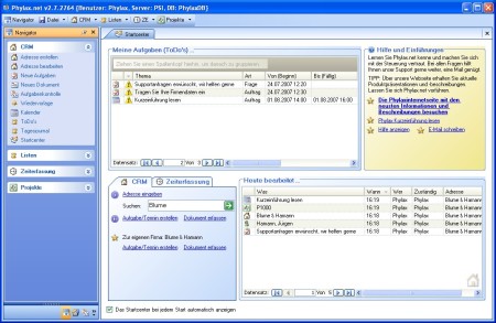 Mit Phylax verwalten Sie professionell alle Informationen, Dokumente, Projekte und Aufgaben zusammen mit Ihren Kundendaten und Ansprechpartnern. Phylax.net verfügt über eine projektbezogene Zeiterfassung mit Gleitzeitkonten und Urlaubsverwaltung. Das Wiedervorlagesystem erinnert Sie an wichtige Termine und Aufgaben. Es stehen mehrere Auswertungsfunktionen mit vielen individuellen Einstellungen und CSV Export (für MS Excel) zur Verfügung.