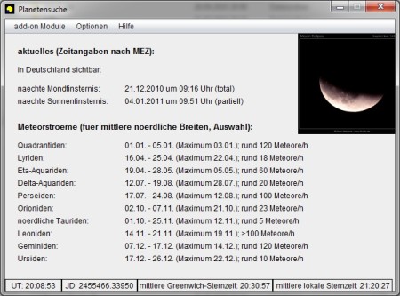 Planetensuche ist eine kostenlose Programmsammlung von Astronomiesoftware (Datenbank, Formelsammlung, Simulationen, Bioastronomie - die Entstehung von Leben, Quiz und ein Entfernungsumrechner). Die Software ist für Anfänger und Profis geeignet.