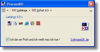 ProcessKO ist ein kleines hilfreiches Tool zum schnellen Killen der laufenden/hängenden Prozesse bzw. Programme, es ist nicht gerade selten bei Entwicklern oder Programmtestern, daß sich die Programme aufhängen und sich über den Taskmanager nicht schließen lassen. Teilweise sind es immer wieder die selben Kandidaten, aus diesem Grund verfügt ProcessKO über eine hilfreiche Funktion: das Anlegen von Lieblings-KO’s.
