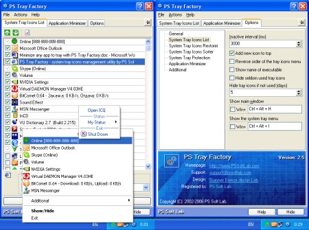 Immer mehr kleine Programme und Tools legen ein Icon im SysTray direkt neben der Uhr ab, damit Sie schnellen Zugriff darauf haben. Leider wird dadurch das SysTray aber sehr schnell unübersichtlich und verliert seinen kleinen Vorteil. Abhilfe schafft dieses kleine Tool mit dem Sie die im SysTray abgelegten Symbole in einer Gruppe zusammenfassen können. Zusätlich können Sie mit dem Tool auch Ihr System schützem.