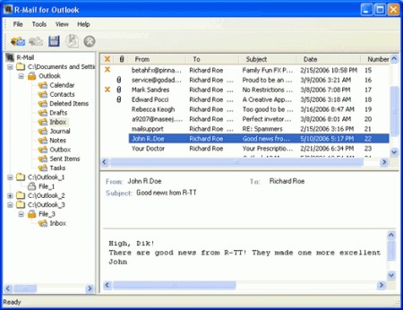 R-Mail für Outlook stellt versehentlich gelöschte Outlook-Mails, Kontakte, Notizen, Aufgaben und andere Einträge wieder her und repariert defekte Outlook-Dateien (*.pst), in denen Outlook Datenordner speichert. Die geretteten Daten können im *.pst, *.msg und *.eml-Format gespeichert werden, das Outlook öffnen und importieren kann. Bei allen Operationen, einschließlich der Rettung von Outlook-Dateien, wird R-Mail für Outlook niemals Original-Daten löschen, ändern oder überschreiben.