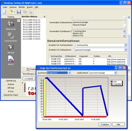 Ranking Toolbox ist eine Kollektion leistungsfähiger Tools, mit denen Sie die Position Ihrer Website in Suchdiensten verbessern können. Überprüfen Sie, wo Ihre Website bei Suchmaschinen gelistet ist und wie Sie Ihre Position verbessern können. Analysieren Sie Mitbewerber-Websites und finden Sie die besten Schlüsselwörter für Ihre eigene.