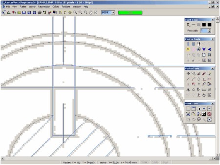 Mit diesem Programm können Sie beliebige Bilder im Rasterformat in das Vektorformat konvertieren. Das Programm unterstützt auch Scanner per TWAIN Schnittstelle, so dass Sie auch direkt Vorlagen einscannen können. Das Zielformat DXF wird von den meisten CAD Programmen die mit Vektorgrafiken arbeiten problemlos verarbeitet. Die Software selbst erlaubt es Ihnen die zu verarbeitenden Bilder beliebig zu ändern und die Rasterlinen zu ändern.