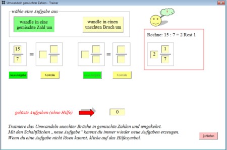 Das Programm ist ein Übungsprogramm zum Rechnen mit gemischten Zahlen.