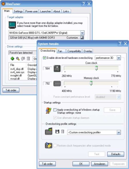 RivaTuner ist ein Tuningprogramm für nVidia- und ATi-Grafikkarten. So ermöglicht es versteckte Optionen in den Treibern freizuschalten bzw. auszunutzen und damit z.B. die die Bildqualität zu verbessern.