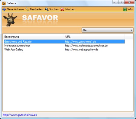 Safavor ist ein browserunabhängiger Bookmark-Manager. Speichern Sie Ihre Lesezeichen außerhalb des Webbrowsers in einem speziell dafür vorgesehenen Programm. Die Lesezeichen können in frei definierbare Kategorien unterteilt werden.