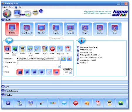 Screeny! LT ist eine Screenshot Anwendung, mit der Sie Fenster, den ganzen Bildschirm, scrollende Fenster wie z.B. Webseiten, Rechteckige oder Freihandregionen, Einzelobjekte wie Button’s oder sonstige Bildschirmobjekte fotografieren können, auch automatisch, womit Screeny! LT auch für unbeaufsichtigte Anwendungen geeignet ist.