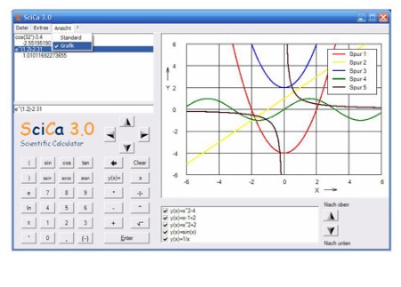 SciCa ist ein wissenschaftlicher Taschenrechner, mit dem Sie komplizierte mathematische Ausdrücke auswerten, sowie zwei-dimensionale Funktionen anzeigen und analysieren können.