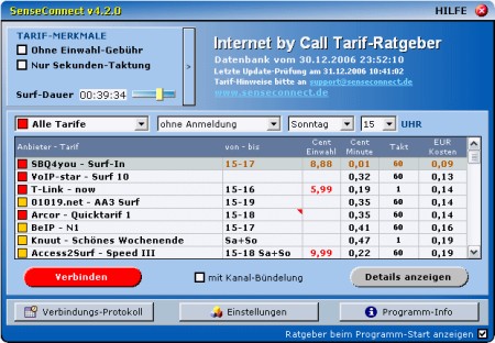Die kostenlose LCR Einwahl-Software für Modem/ISDN spart bis zu 80% Onlinekosten! Über einen unabhängigen Tarifvergleich lassen sich die gerade günstigsten Internet-by-Call Zugänge direkt per Klick nutzen. Die automatische Tarif-Aktualisierung, ein informativer Gebührenzähler, aussagekräftige Verbindungsstatistiken und eine praktische E-Mail Postfach-Vorschau runden diesen innovativen "Internet Least Cost Router" ab.