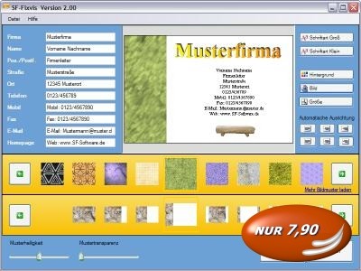 In wenigen Minuten erstellen Sie Ihre eigene Visitenkarte mit der Auswahl aus 200 Hintergrundmustern und -bildern und 100 verschiedenen Designs.