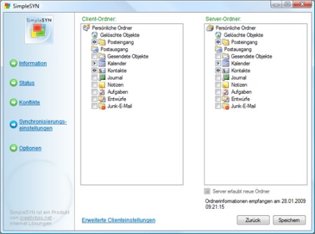 SimpleSYN synchronisiert alle Outlook-Daten wie E-Mails, Kalender, Kontakte, Aufgaben und Notizen zwischen mehreren PCs. Der Datenaustausch erfolgt über das Netzwerk oder optional über das Internet - sicher, vollautomatisch und ohne Datenspeicherung in der Cloud. Unterstützt u.a. Windows 10 und Outlook 2016.