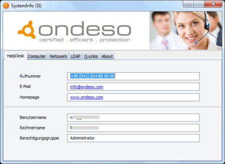 ondeso SystemInfo (SI) spart dem Helpdesk Zeit, um an essentielle Informationen über Benutzer oder Computer zu kommen. Dieser kann den User auf ein definiertes, immer gleiches visuelles Programmfenster verweisen, welches die Informationen in immer gleicher Reihenfolge gebündelt darstellt.