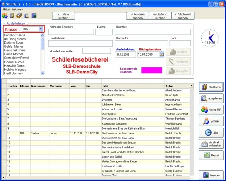 netzwerkfähige, leicht zu bedienende und leistungsfähige Schülerlesebücherei-Verwaltung - mit Barcodefähigkeit - Erstellen von Leseausweisen und Buchetiketten mit Barcode - übersichtliche Darstellung- Statistikfunktion- eigener Layout-Editorfür Leseausweise und Buchetiketten- DYMO-LabelWriter 400 integriert