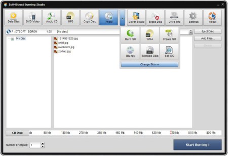 Mit Soft4Boost Burning Studio kann man schnell und einfach CDs, DVDs und Blue-rays brennen. Erstellen Sie eigene Covers für Ihre Disks mit dem integrierten Soft4Boost Cover Studio. Brennen Sie Boot-Disks und passwortgeschützte Diskabbilder (.daa, .uif). Soft4Boost Burning Studio unterstützt CD-R/RW, DVD+/-R, DVD+/-RW, DVD-RAM, Double/Dual Layer DVD und Blu-Ray Disks.