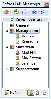 Der Softros LAN Messenger ist ein sicherer Netzwerk Messenger zum Nachrichten- und Datenaustausch von Computer zu Computer für LANs, WANs und im Intranet. Die preiswerte Software benötigt keinen zentralen Server und ist einfach zu installieren und zu nutzen. Ein Rechner mit Softros LAN Messenger findet automatisch andere PC mit dem Messenger gestartet und ermöglicht Kommunikation ohne zentralen Server.