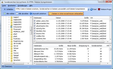 SonderZ konvertiert alle Sonderzeichen in HTML-Dateien in die jeweiligen HTML-Entitäten/HTML-Codes. Z.B. aus "Ü" wird "Ü". Zusätzlich können in den Dateien Ersetzungen vorgenommen und die HTML-Dateien komprimiert werden, so dass diese vom Webbrowser schneller geladen werden. Mit SonderZ können einzelne Dateien oder ganze Ordner mit Unterordnern bearbeitet werden.