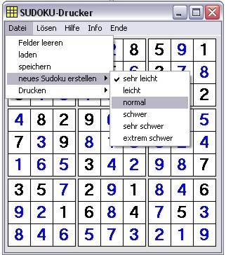Erstellen und drucken sie ganz einfach Sudoku-Rätsel in verschiedenen Schwierigkeitsstufen. Natürlich können sie auch dieses Programm zum Lösen dieser Rätsel nutzen.