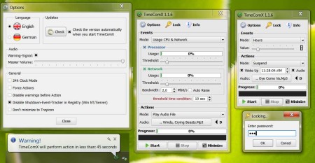TimeComX ist ein kleines und ressourcenschonendes Programm, welches ihren Computer nach Ablauf einer festgelegten Zeit oder bei einer Unterschreitung einer Netzwerk oder Prozessor-Auslastung, in verschiedene Aktionen versetzen kann.