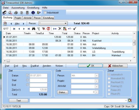 Mit diesem Programm kann die Arbeits- und Projektzeit erfasst und ausgewertet werden. Das Programm ist netzwerkfähig (mehrere Benutzer können zur gleichen Zeit auf die gleichen Daten zugreifen). Integriert ist eine Benutzerverwaltung mit Passwortschutz für jeden Benutzer.