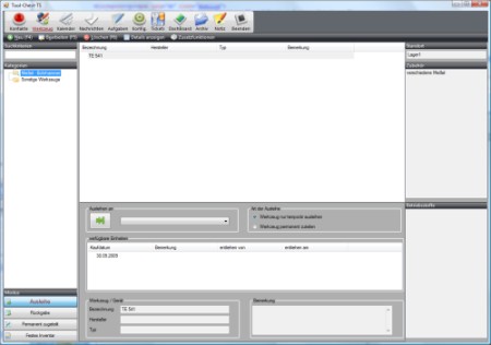 Mit Tool-Chest-TS behalten Sie immer den Überblick über alle Werkzeuge. Abgerundet wird die Software durch die Möglichkeit der Aufgabenerstellung, z. B. für Wiederkehrende Prüfungen. Ebenfalls enthalten ist eine Adressdatenbank mit deren Hilfe sie auf Knopfdruck fertige Dokumente erzeugen und auf Wunsch archivieren können. Ebenfalls integriert ist ein Kalendermodul mit dem Sie Ihre Termine übersichtlich verwalten.