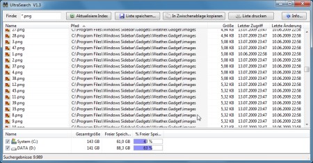 UltraSearch sucht Dateien auf lokalen NTFS Laufwerken und liefert die Resultate innerhalb von Sekunden. Dabei nutzt die Software nicht einen zuvor aufgebauten Index oder einen Hintergrundprozess, sondern erreicht ihre Geschwindigkeit, indem sie direkt auf der Master File Table (MFT) von NTFS Partitionen arbeitet. Sie können einen Dateinamen oder ein Muster wie *.exe angeben und sehen die Suchergebnisse meist schon während des Tippens.