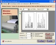 Endlich drucken Sie richtig preiswert! Das Programm druckt bis zu 16 Seiten auf ein Blatt. Das spart Papier und Tinte. Sie drucken Ihre Dokumente über einen virtuellen Druckertreiber. Die Dokumente können Sie dann in Form von PostScript-Dateien in das Programm importieren. Das Programm exportiert die Dokumente auf Wunsch auch als Bitmap. In Verbindung mit CAD-KAS Poster-Drucker können Sie so beliebige Dokumente auch als Poster ausdrucken.