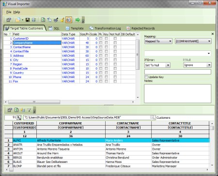 Visual Importer lädt Daten in alle Datenbanken aus jeder DB oder Datei. Unterstützt Excel, Access, DBF und Textdateien, Oracle, MS SQL Server, Interbase/Firebird, MySQL, PostgreSQL und ODBC-kompatible Datenbanken. Tolle Performance: tausende von Datensätzen pro Sekunde.