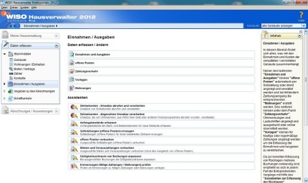 Mit WISO Hausverwalter 2012 erstellt man rechtssichere, taggenaue Betriebskostenabrechnungen von Wohn- und Gewerbeeinheiten - ganz einfach und bequem durch Erfassung der Einnahmen und Ausgaben. Der Vorteil: Gegenüber konventionellen Lösungen (z.B. Word und Excel) spart einem der Einsatz von WISO Hausverwalter jede Menge Zeit bei der Buchführung und Datenverwaltung. Änderungen im Mietrecht werden automatisch per Update in die Software eingespielt.