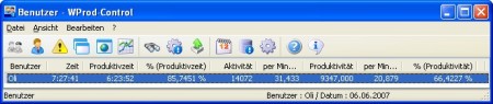 Die WProd-Control Software analysiert die Aktivität und die Arbeit am PC und ermöglicht die Auslastung und die Produktivität der Mitarbeiter in Zahlen darzustellen. Ohne WProd-Control : Die Arbeit am PC der Mitarbeiter ist für den Vorgesetzten wie eine Black Box. Man kann das Ergebnis der Arbeit beurteilen, aber die Auslastung der Mitarbeiter kann meist nur vage geschätzt werden. Datenschutz : Die Inhaltsdaten werden nicht ermittelt.
